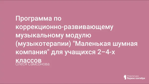 Коррекционно-развивающее вводное занятие по музыкотерапии. В основе заложена идея К. Орфа о том, что в основе обучения лежит «принцип активного музицирования» и «обучение в действии». Комплексное обучение музыке на уроке предоставляет детям широкие возможности для творческого развития способностей.