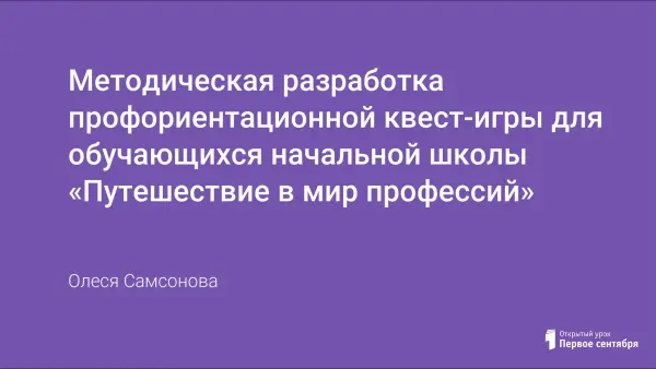 Методическая разработка профориентационной квест-игры для обучающихся начальной школы представляет собой путешествие в мир профессий по станциям, названия которых соответствуют названию определенной профессий. На каждой станции команда выполняет определенное задание и получает часть пазла, пройдя все станции, у игроков из полученных пазлов составляется определенная картинка, общий конечный продукт игры.