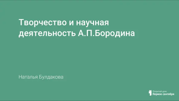 Цель урока: ознакомление с творчеством и научными работами А.П.Бородина; закрепление знаний о жанрах музыки; формирование патриотических чувств; закрепление знаний по темам «Техника безопасности на уроках химии», «Лабораторное оборудование», «Относительная молекулярная масса».
