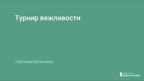 Тема турнира вежливости «О хороших манерах на живых примерах» актуальна в современной школе. Мероприятие нацелено учить применять этические знания на практике. В ходе классного часа продолжается развитие личностных положительных качеств учащихся. Развитие направлено на ценностные ориентации в жизни. Содержание мероприятия в игровой форме с иллюстративным материалом позволит воспитывать уважение к окружающему, к товарищам, чувство гражданственности.