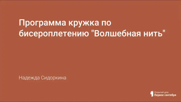 Программа по бисероплетению "Волшебная нить" рассчитана на 3 года обучения, для детей от 7 до 14 лет. В ходе кружковой работы у учащихся развиваются творческие возможности, воспитывается трудолюбие, самостоятельность, эстетический вкус, формируется представление о декоративно-прикладном искусстве.