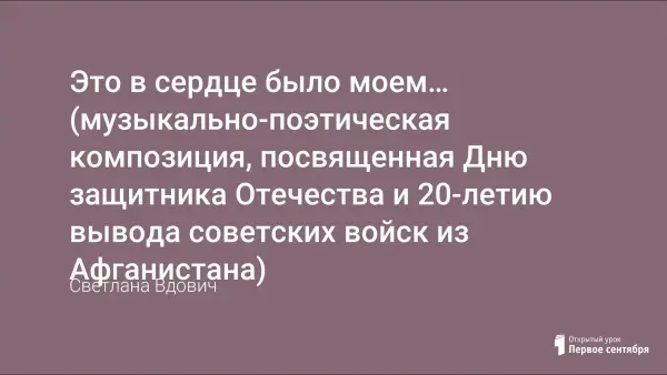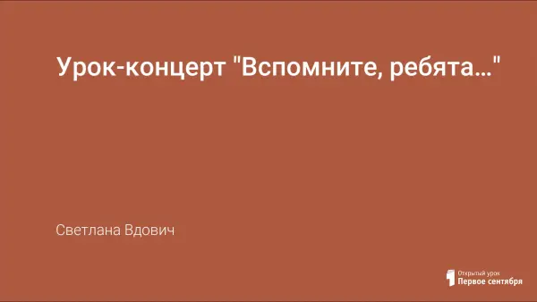 В программе обучения литературе в 11-м классе отводится время только для обзорного знакомства с авторской песней, как явлением в русской культуре и литературе. Нетрадиционная форма урока позволяет более полно, наглядно и эмоционально изучить эту тему на примере песен и стихотворений военной тематики. Ученики готовятся к концерту заранее, поэтому имеют возможность глубже ознакомиться с материалами темы. Такой урок можно провести в виде внеклассного мероприятия или школьного вечера к Дню Победы.