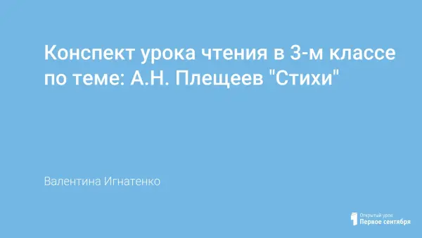 Урок чтения в 3-м классе знакомит учащихся с личностью и творчеством А.Н. Плещеева.