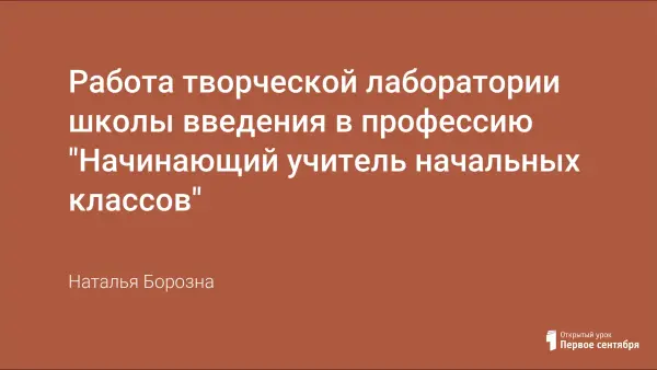 Работа творческой лаборатории школы введения в профессию "Начинающий учитель начальных классов".