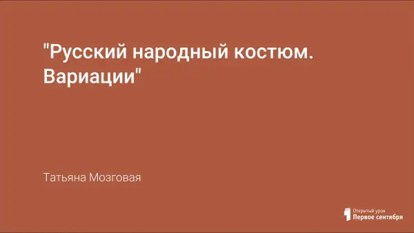 Цели урока: познакомить детей с историей и символикой русского костюма, с самим русским костюмом, сюжетами вышивки; осуществить комплексный подход через межпредметные связи.