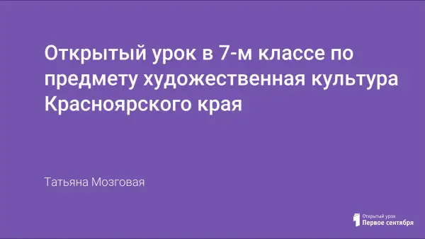Цели и задачи урока: познакомить учащихся с национальными традициями Красноярского края; воспитать чувство причастности к судьбе родного края, ответственности за сохранение культурного и духовного наследия; развить творческие способности.