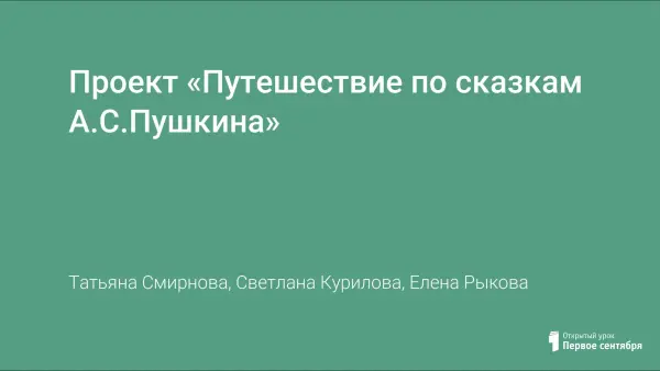 Проект «Путешествие по сказкам А.С.Пушкина»