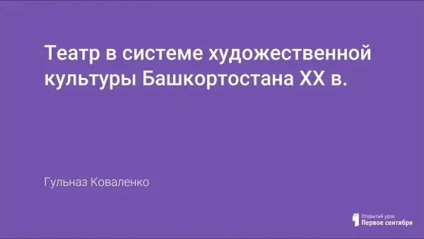 Урок подготовлен согласно Государственному образовательному стандарту общего образования, раскрывает раздел "Культурные традиции родного края". Урок проводится в 11-м классе, в контексте изучения "Художественной культуры конца XIX–XX вв." В результате ученик должен знать особенности языка театра; уметь пользоваться различными источниками информации о театре Башкортостана; использовать приобретенные знания и умения в повседневной жизни для организации личного досуга.