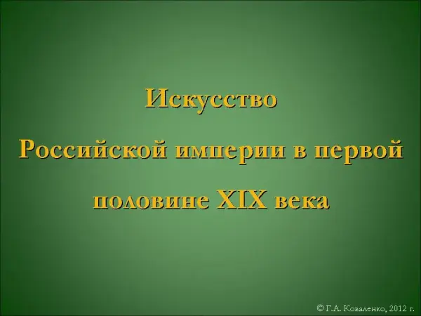 Урок разработан для учащихся 11-го класса, выбравших художественно-эстетический профиль, и включает в себя две части («Искусство России в правление Александра I», «Искусство России в правление Николая I»). Тема соответствует «Стандарту среднего (полного) общего образования по МХК: профильный уровень». Межпредметные связи с дисциплиной «История России» по теме «Культура России и ее связи с европейской культурой первой половины XIX века». Основная часть времени отводится для работы с презентацией.