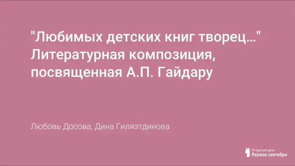 Композиция посвящена жизни и творчеству русского писателя Аркадия Гайдара. Мероприятие, сопровождающееся слайдовой презентацией, направлено на формирование патриотического чувства учащихся, на развитие интереса к теме гражданского и нравственного воспитания подростков. Предлагаемая композиция может быть использована на уроках чтения или как внеклассное мероприятие.