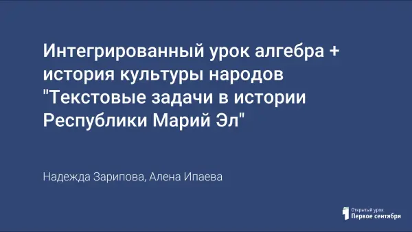Интегрированный урок( ИКН + алгебра) "Текстовые задачи в истории Республики Марий Эл". 7-й класс