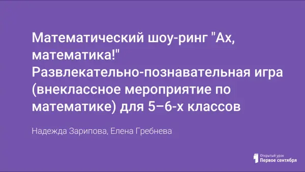 Математический шоу-ринг "Ах, математика!" Развлекательно-познавательная игра (внеклассное мероприятие по математике) для 5–6-х классов