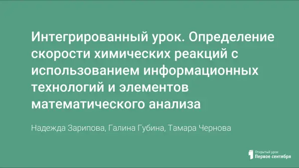 Измерение скорости химической реакции сложно осуществить в условиях школьного кабинета химии, но её можно вычислить, используя математические методы и информационные технологии. Интегрированный урок химия + математика + информатика в 11-м классе - вариант решения этой задачи.