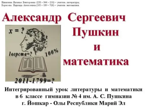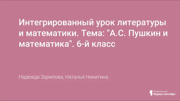 Интегрированный урок литературы и математики. Тема: "А.С. Пушкин и математика". 6-й класс