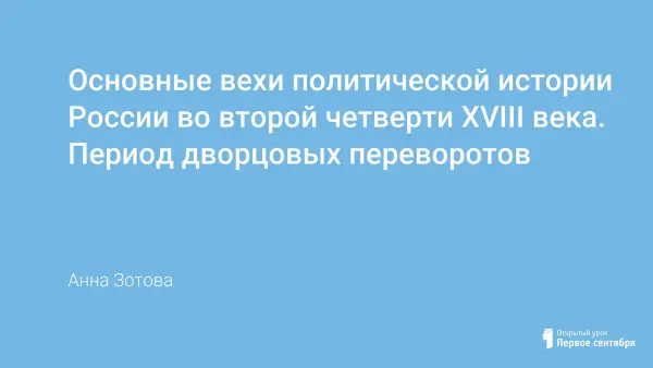 Основные вехи политической истории России во второй четверти XVIII века. Период дворцовых переворотов