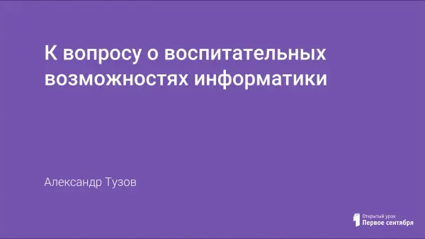 В статье представлены размышления автора о назначении школы, о месте информатики в воспитательном процессе; результаты их реализации на практике. Автор видит возможность усилить воспитательную составляющую уроков по темам: "Язык как средство хранения, передачи и обработки информации", "Моделирование", "Информационные основы процессов управления", "Информационные технологии" и т.д.