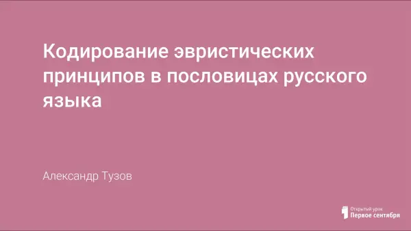 Тема традиционна для курса информатики и ИКТ. В работе освещаются эвристические смыслы пословиц – образцов русского народного предания. Представлена презентация, составленная с методом логико-графического моделирования (по А.П. Егидесу).