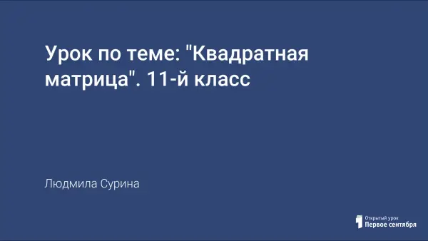 Урок по теме "Квадратная матрица" входит в состав содержательной линии "Информационные технологии". Урок посвящен изучению наиболее часто используемого типа двумерных массивов – квадратной матрице и проводился в 11-м классе. Данный урок рассматривается как обобщающий по пройденным темам "Одномерные массивы" и "Двумерные массивы", а кроме того, знакомит учащихся с самым распространенным видом табличного представления числовых данных – матрицей.