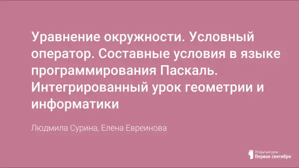 Уравнение окружности. Условный оператор. Составные условия в языке программирования Паскаль. Интегрированный урок геометрии и информатики