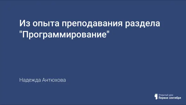 Рассмотрены вопросы выбора языка программирования при изучении программирования в общеобразовательной школе с точки зрения учителя, работающего в школе. Описаны методические приемы, используемые при ведении уроков программирования и особенности объяснения отдельных тем. В приложении приведены примеры теоретико-синтаксических тестов и конспект модуля "Графика. Циклы".