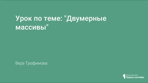 В статье представлена разработка урока по теме "Двумерные массивы". Данный урок может быть проведен при закреплении темы. На уроке предусмотрена индивидуальная работа с учетом дифференцированного подхода к учащимся. Закрепляются навыки построения блок-схем алгоритмов и записи решения задачи на языке программирования. Программирование алгоритмов приведено на языке Q-Basic.