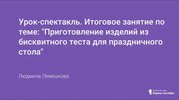 Урок-спектакль. Итоговое занятие по теме "Приготовление изделий из бисквитного теста для праздничного стола".