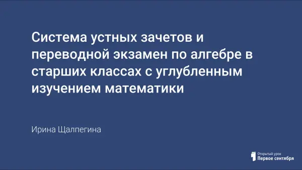 Для успешного усвоения углубленного курса математики в 10–11-х классах необходимо ориентировать детей на изучение его теоретических основ. Формировать умения и отрабатывать навыки решения задач можно лишь опираясь на теоретические знания учащихся. Одна из главных задач преподавателя - организовать работу таким образом, чтобы к выпускному экзамену ученики были способны самостоятельно выдвинуть идею при решении конкретной задачи, грамотно обосновать свои действия, найти способы оценки и проверки ответа. Для получения подобного результата нужна серьезная теоретическая подготовка. Одной из составляющих такой подготовки является сдача устных зачетов и переводных экзаменов.