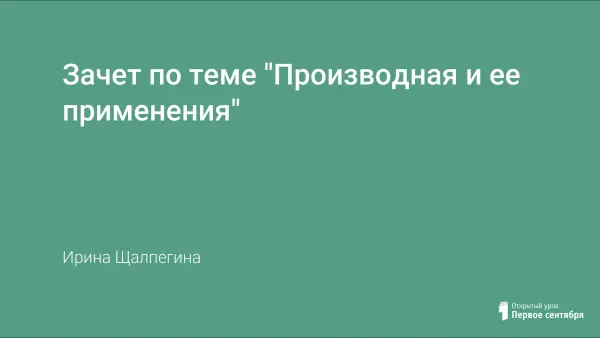 В работе представлены билеты к зачету по теме «Производная и ее применения», который сориентирован на учащихся 10-х профильных классов. Зачет содержит 12 билетов по пять вопросов. Первый вопрос проверяет теоретические знания, а в остальных представлены практические задания различной степени сложности.