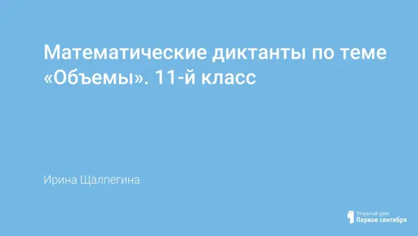 Важная составляющая формирования математических компетенций учащихся на уроках геометрии – умение осмысленно воспроизводить формулу. Одна из наиболее эффективных форм – математический диктант, который наряду с контролирующими функциями носит обучающий характер. В статье представлены четыре математических диктанта по теме «Объемы» и подготовительные задачи.