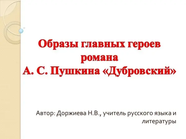 Образы главных героев романа А.С.Пушкина "Дубровский"