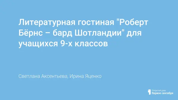 Поэзия – прекрасный материал для духовного, нравственного и эстетического воспитания учащихся. Стихи, песни и поэмы шотландского поэта Роберта Бернса о вечном: о любви и дружбе, о долге перед Родиной, о верности, доброте, о вере в будущее, о чести. Когда читаешь их, возникает мысль, что поэт наш современник. Встреча в литературной гостиной приурочена к дню рождения Роберта Бернса.