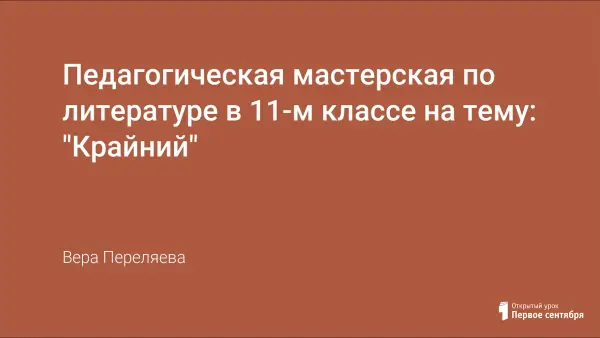 Последние два года занимаюсь созданием модели урока-диалога. Теперь я могу сказать, что у меня сложился собственный подход к преподаванию литературы, который можно назвать комбинаторной системой, представляющей сочетание уже известных методов преподавания и собственных творческих наработок. В чем я вижу новизну? В применении нетрадиционных приемов, форм и типов организации урока. Предпочтение отдано урокам креативного типа: урок-противоречие, урок-фантазия, поисковый урок, урок художественного моделирования, эвристический урок, деловая игра, урок-наоборот (ученик в роли учителя; сначала зачет по теме, потом ее изучение), урок защиты творческих работ, урок-диспут, урок-диалог.