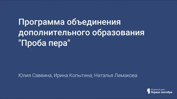 Объединение дополнительного образования "Проба пера" возникло из реальных