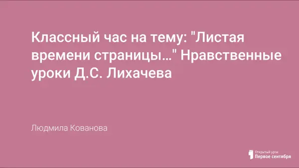 Классный час проводится в форме презентации газеты "Листая времени страницы...". Цель классного часа: знакомство с биографией и статьями академика Лихачева; формирование нравственных, эстетических и патриотических качеств учащихся.