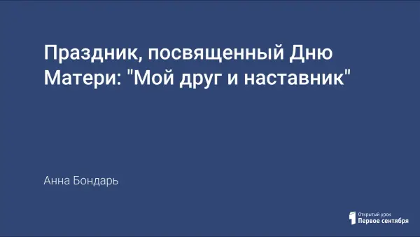 День Матери - важный и нужный праздник в жизни женщины и ее детей. А как быть, когда волей судьбы ребенок воспитывается в школе-интернате и рядом с ним находится наставник, который заменил ребенку мать? Этот праздник в нашей школе ребята назвали "Мой друг и наставник" и посвятили его своим воспитателям.