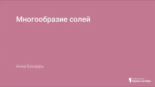 Автор знакомит учащихся с многообразием солей, важнейшими представителями хлоридов, карбонатов и фосфатов, их применение в жизни человека.