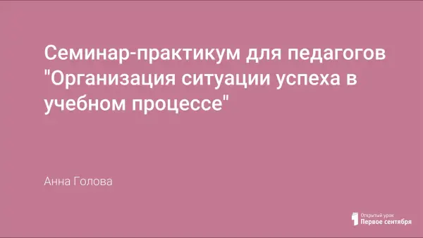 Наиболее существенный для овладения знаниями мотив - это достижение успеха, который является приобретенным. Поэтому так важно учителю уметь создавать ситуацию успеха для учащихся. Настоящий семинар-практикум позволяет учителю не только теоретически воспринять структуру и принципы построения ситуации успеха, но и оценить собственные возможности саморазвития, потенциал рефлексивной деятельности.
