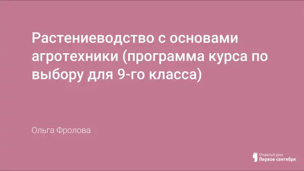 Предлагаемый курс разработан для учащихся 9-го класса сельских школ, которые выбирают для своего дальнейшего образования агротехнологический профиль. Курс не только расширяет знания по биологии, но и прививает интерес к практической и исследовательской деятельности в области сельского хозяйства. Особенность данного курса в том, что он имеет теоретическую и практическую направленность.