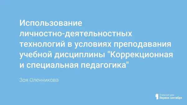 Использование личностно-деятельностных технологий, в процессе преподавания учебной дисциплины "Коррекционная и специальная педагогика" позволяет решить многие задачи, направленные на профессиональное становление будущих педагогов.
