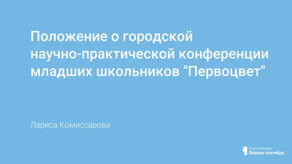 В статье предложено Положение о городской научно-практической конференции младших школьников "Первоцвет". Данная конференция является одним из направлений работы с одаренными детьми Управления образования г. Усолья-Сибирского Иркутской области. Научно-практическая конференция "Первоцвет" представляет собой обмен мнениями, идеями среди младших школьников.