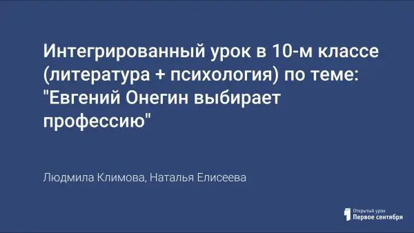 Интегрированный урок в 10-м классе (литература + психология) по теме: "Евгений Онегин выбирает профессию"