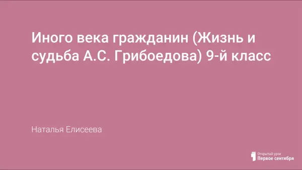 Иного века гражданин (Жизнь и судьба А.С. Грибоедова) 9-й класс