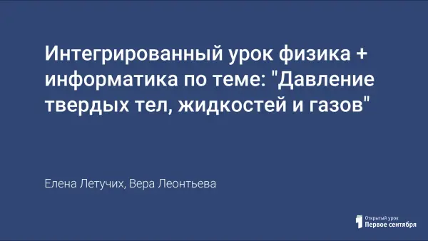 Интегрированный урок физика + информатика по теме: "Давление твердых тел, жидкостей и газов"