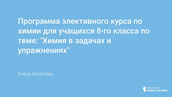Элективный курс по химии для учащихся 8-го класса по теме:" Химия в задачах и