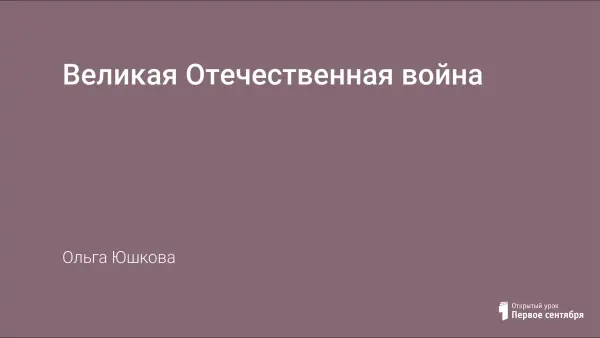 Урок посвящен одной из важнейших проблем курса истории ХХ века - проблеме начала Великой Отечественной войны. В процессе урока, построенного по технологии проблемного обучения, учащиеся сопоставляют различные точки зрения по вопросам готовности СССР и Германии к войне, роли Сталина, выясняют позиции исследований о виновнике развязывания войны, об основных сражениях и их исходе. Их деятельность носит поисковый, исследовательский характер.