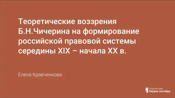 В данной статье рассматривается тема трансформации правовой системы Российской империи середины XIX – начала XX вв. под влиянием либеральной идеологии и формирование Б.Н.Чичериным концепции естественного права.