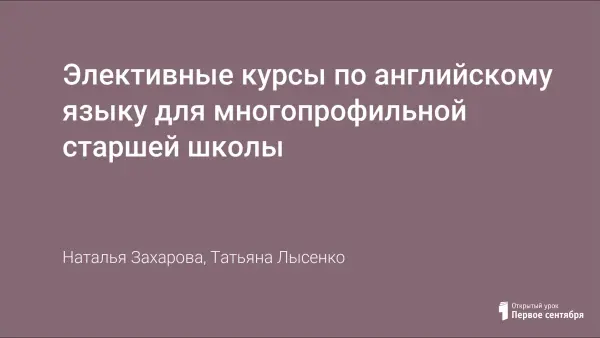 Элективные курсы по английскому языку для многопрофильной старшей школы