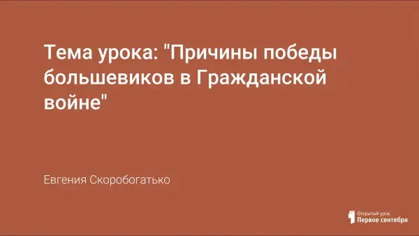 Урок-проект по истории, который помогает ученикам через рассмотрение таких проблем, как неизбежность и пределы революционного насилия, идеология и социальная психология "военного коммунизма", крестьянства в гражданской войне, "белый" и "красный" террор и другие, выяснить причины победы большевиков в Гражданской войне, а также понять, что трагедия гражданской войны учит нас в первую очередь отказу от ненависти, насилия, произвола как метода государственного строительства, всей организации жизни, как надежного способа "осчастливить" народ.