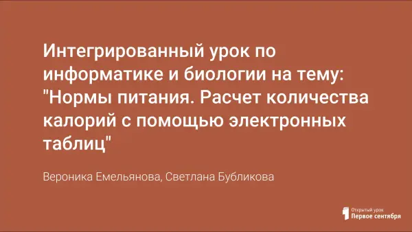 Интегрированный урок по информатике и биологии на тему: "Нормы питания. Расчет количества калорий с помощью электронных таблиц"