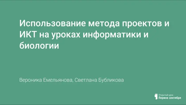 В своей работе мы хотим поделиться опытом, как применение ИКТ помогает на уроках биологии. Приводим пример урока по природоведению «Вселенная» с применением компьютерной презентации, а также рассказываем о том, где взять материал к уроку, если на подготовку отводится очень мало времени. Выход мы видим в привлечении к работе учеников, которые в ходе выполнения проектов на уроке информатики создадут огромную базу материалов в помощь учителям-предметникам. В нашей работе приводятся также проектные работы учеников, которые будут хорошей поддержкой как ученикам, так и учителям.